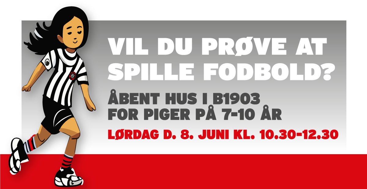 Er du 7-10 år, så tag dine bedste veninder med under armen og kom forbi til en sjov formiddag i B1903. Måske kunne fodbold også være noget for dig. Fra næste sæson (august 2024) starter vi nemlig hold op for piger født i 2014, 2015, 2016 og 2017.