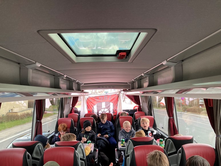 (I bussen blev der varmet godt op med sodavand, snold og slagsange)