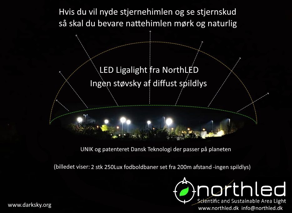 Herfra er det gået med målinger af potentiel strømbesparelse, arbejde med finansiering af det nye anlæg, møder med kommunen og firmaer m.m., og her i sensommeren faldt det hele på plads. B1903 får således ny banebelysning med LED leveret af firmaet NorthLED. Det bliver installeret i december 2020, og er en såkaldt NorthLED Ligalight løsning. Ligalight er en dansk patenteret løsning, som adskiller sig fra andre LED-løsninger ved, at den skærer lyset ved hjælp af optisk modulation. Med denne måde anvendes der ikke energi til at belyse skærme, kanter eller reflektorer og de anvender dermed både mindre energi og lysforurener væsentligt mindre til både omgivelser og himmelrum end andre løsninger. Løsningen produceres af NorthLED, som sammen med DTU fotonik har udviklet og patenteret teknologien, der i disse år implementeres på en række idrætsanlæg rundtomkring i Danmark og i verden.