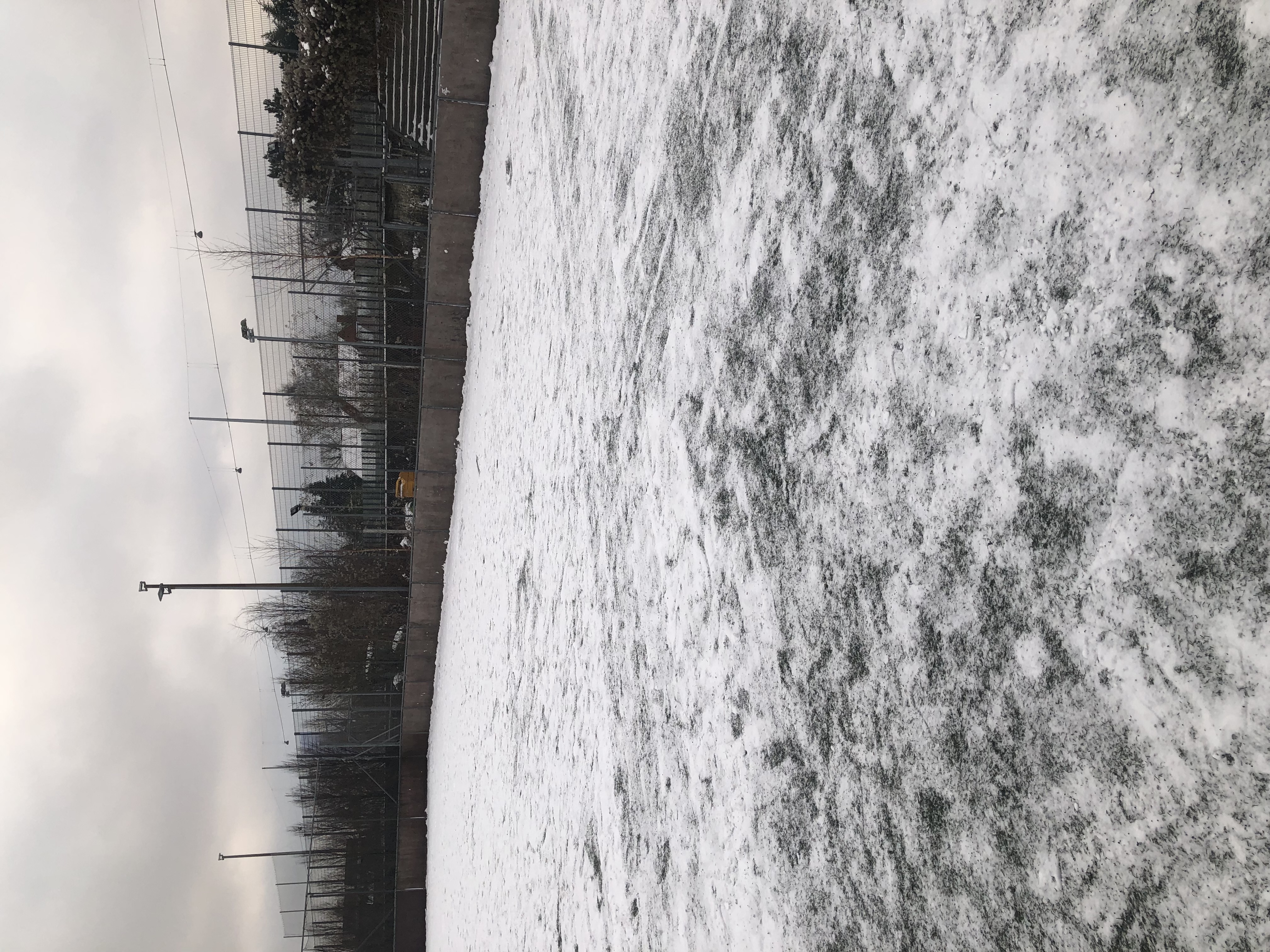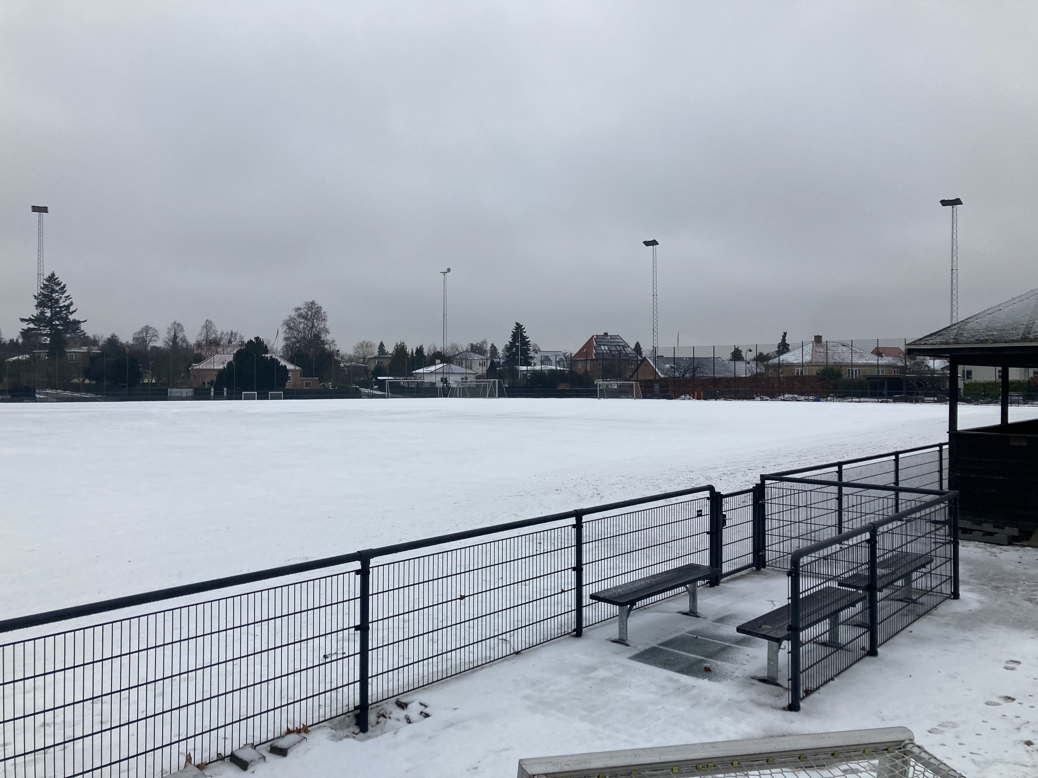 De hold som skal træne på bandebanen nede i B1903, der ligger et par cm sne og anbefalingen er, at træningen i dag ikke gennemføres.