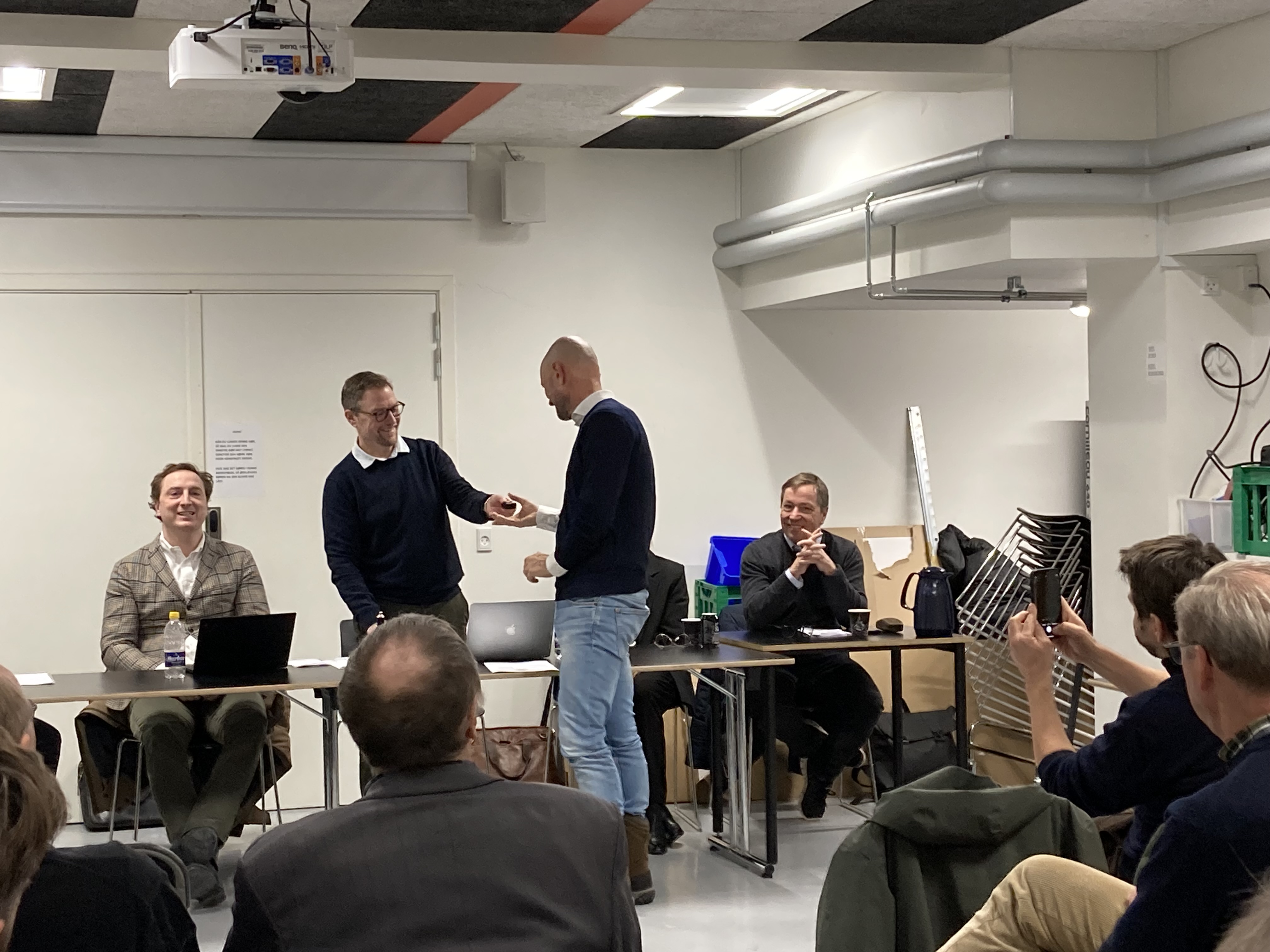 (Formand Ulrik Marschall, overrækker 50 års nål til Henrik Hauge)