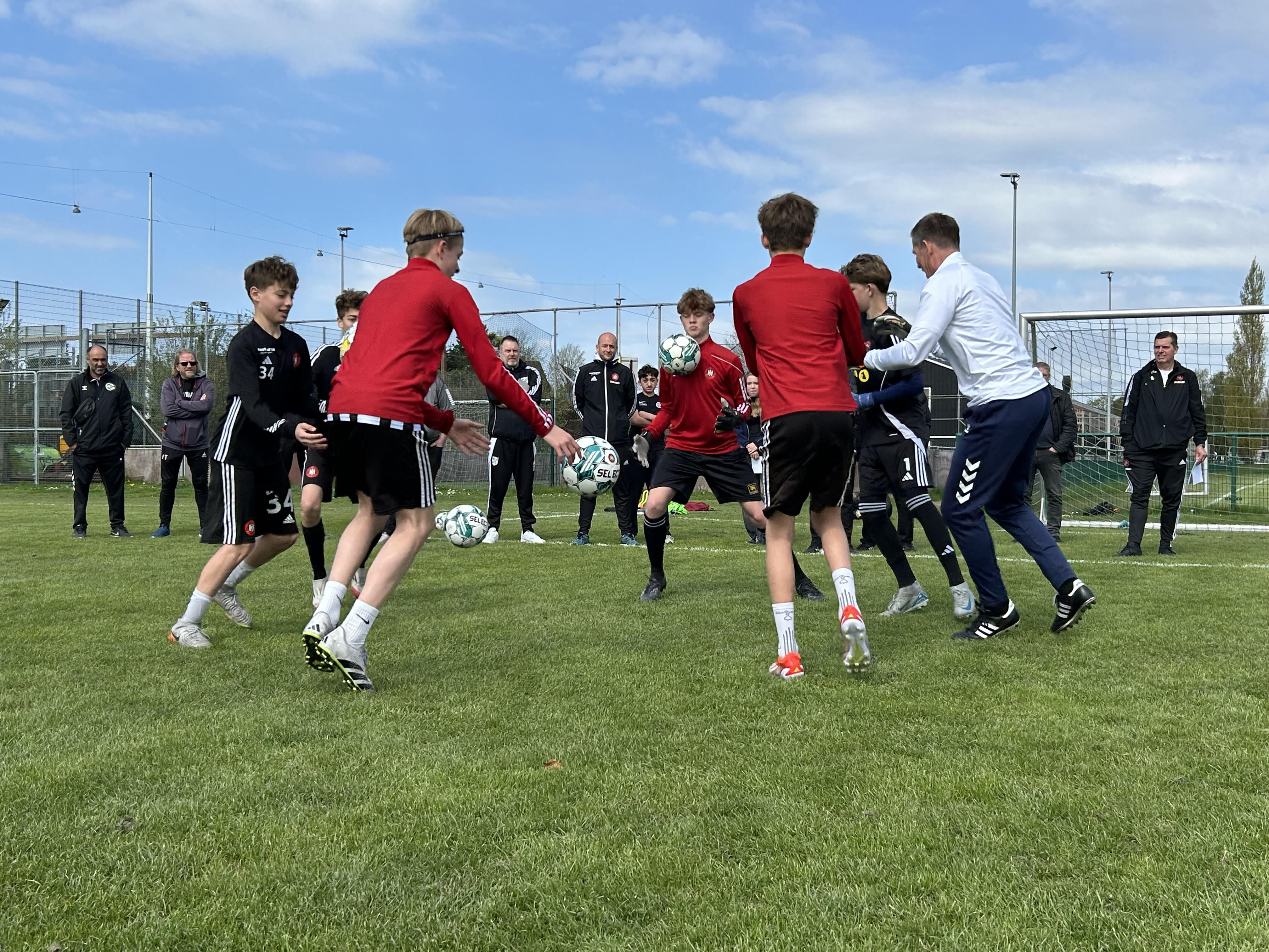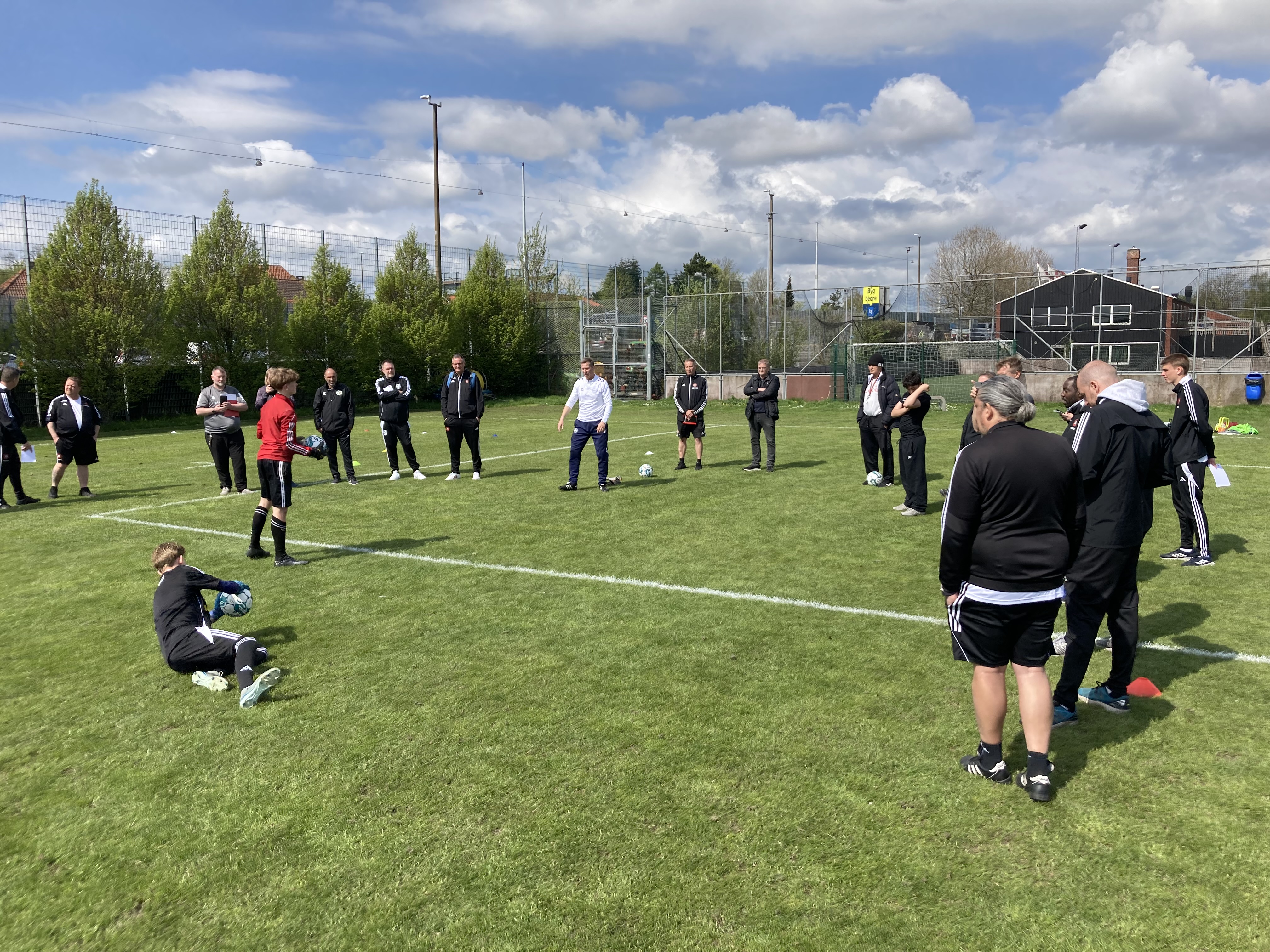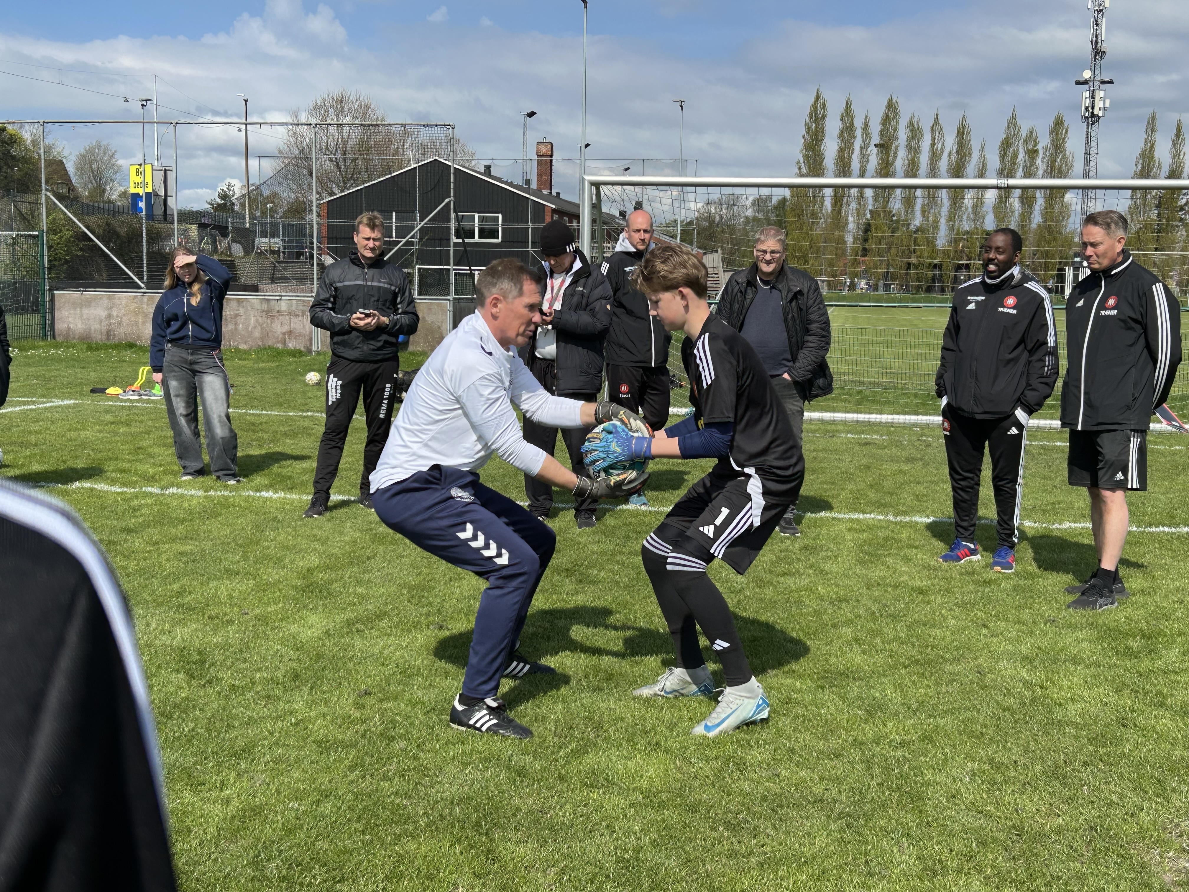(Claus Fallentin i en øvelse med medierne, som bestod af B1903-markspillere og B1903-keepere fra diverse ungdomshold)