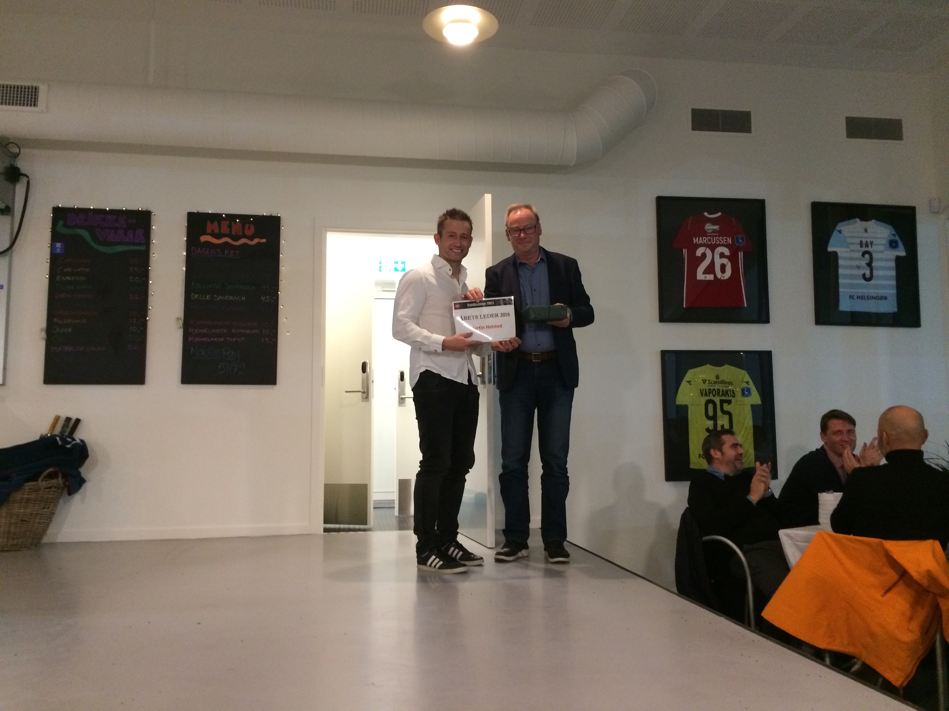 På nedenstående billede bliver prisen meget fortjent overrakt til Martin af bestyrelsesformand, Benny Olsen.
