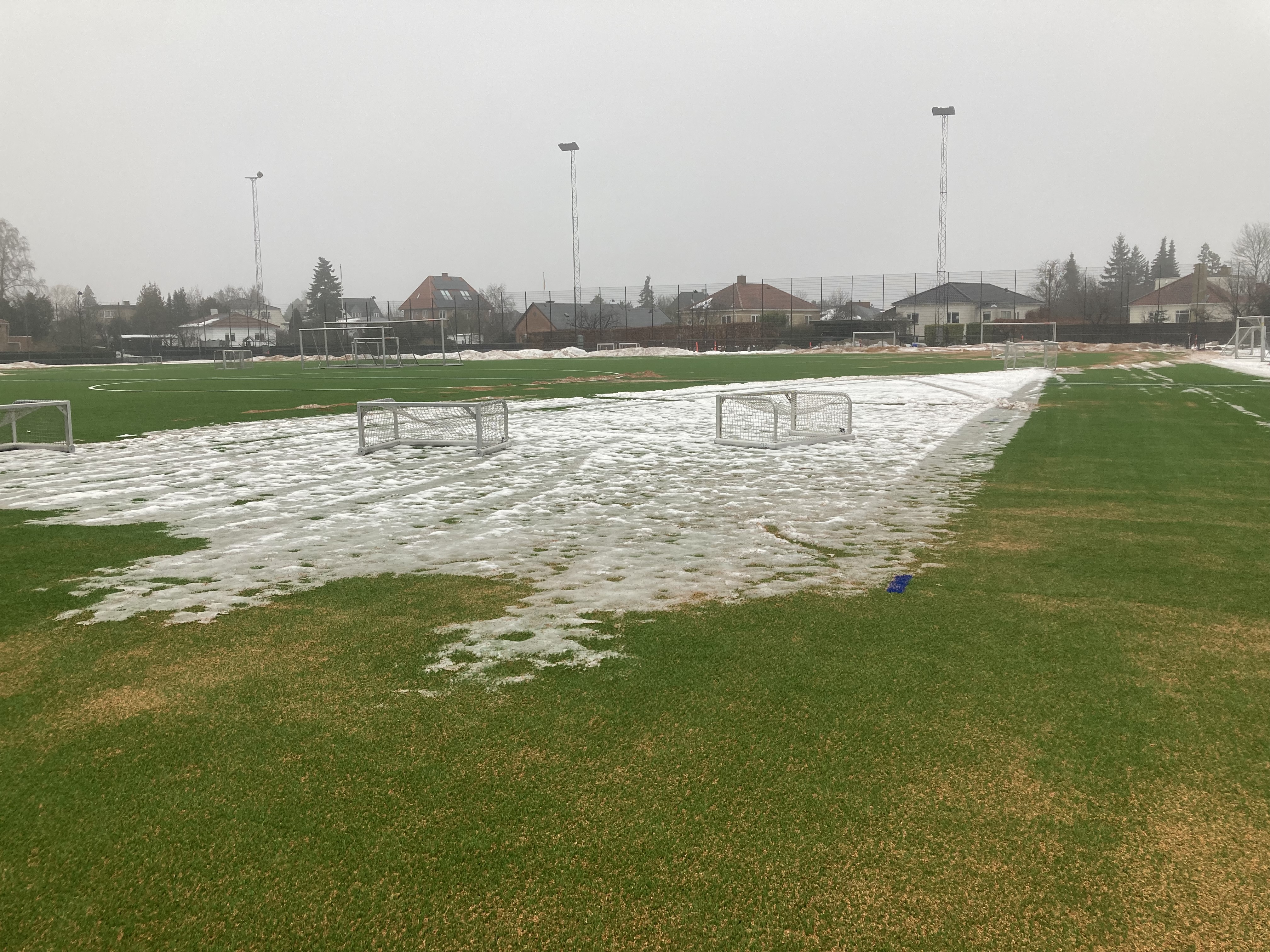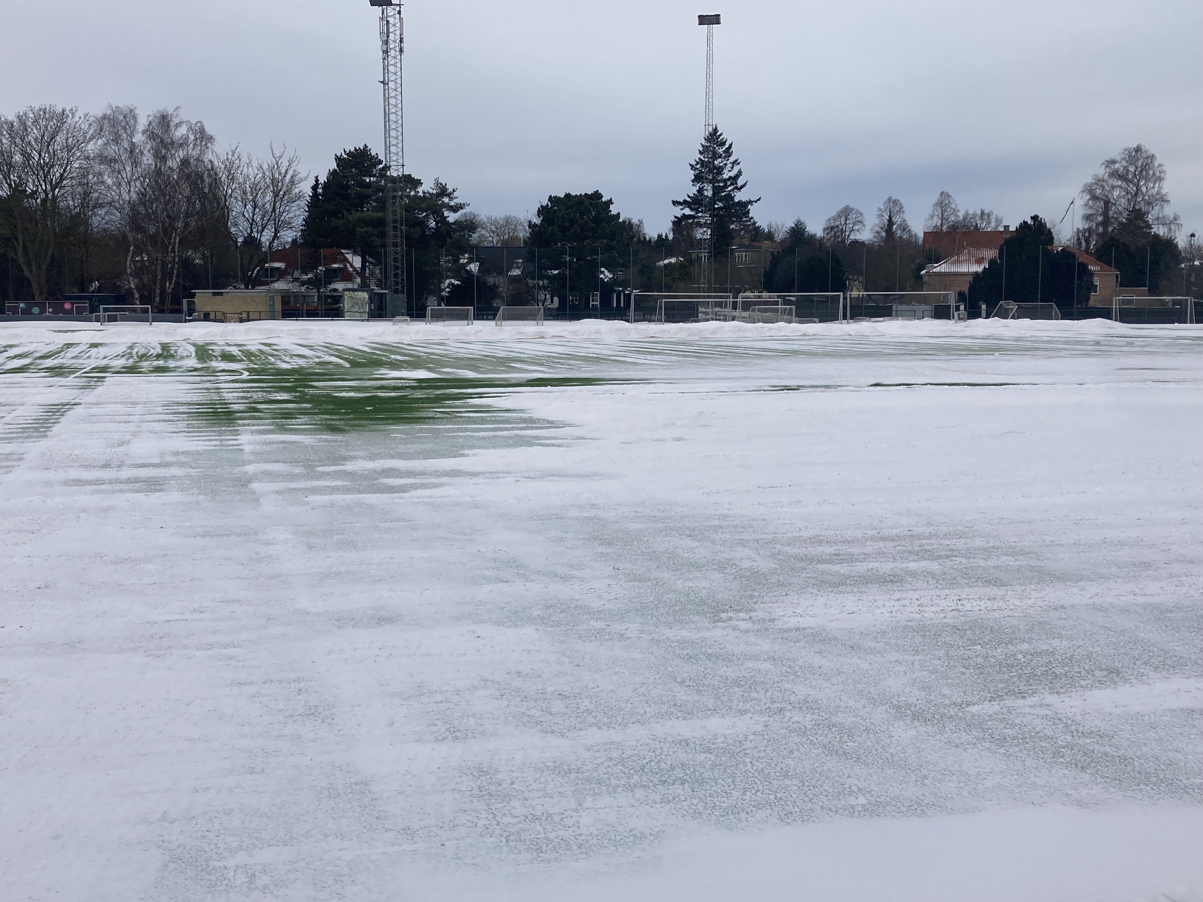 Til dem der har kampe her de næste par dage, så vil der inden for nogle timer kommer separat kommunikation. Og så vil vi lave en plan b i forhold til weekenden, hvor der skulle komme lidt plusgrader, men ikke sikkert det er nok.
