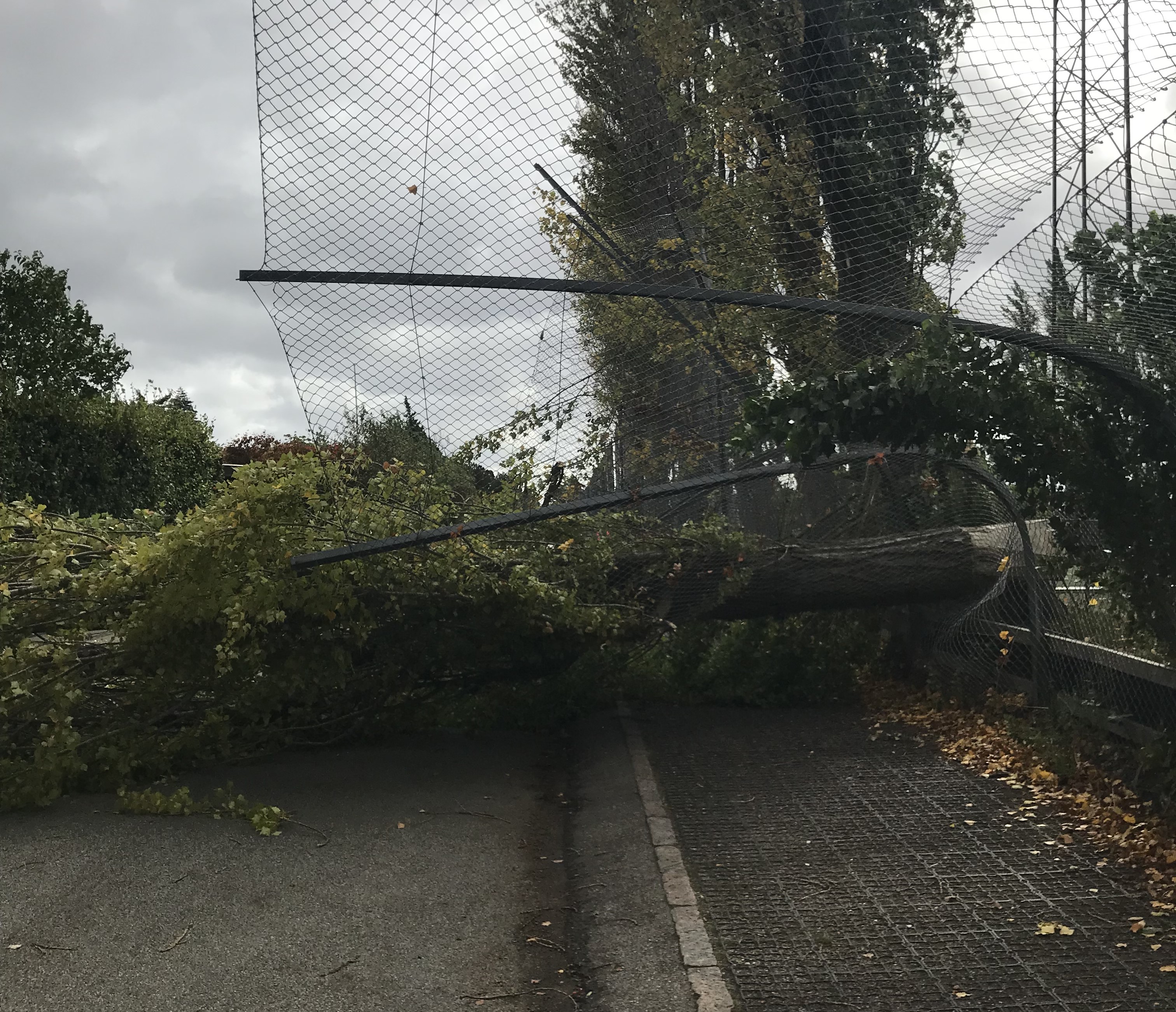 B1903 kommunikerer ud i morgen, onsdag, når vi har nærmere info og vurdering omkring sikkerhed i forhold til at bruge banen. Kommunen havde planer om at fælde træerne og skifte hegnet her i efteråret, men det kan være, at det bliver fremrykket nu. I hvert fald i forhold til træerne.