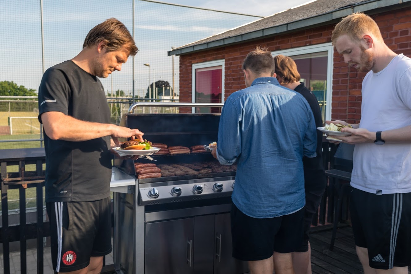 Efter VM var færdigspillet var der grillbuffet samt øl og sodavand på terrassen, hvor restauratøren Karina diskede op med burgere, der i den grad var et VM værdigt.