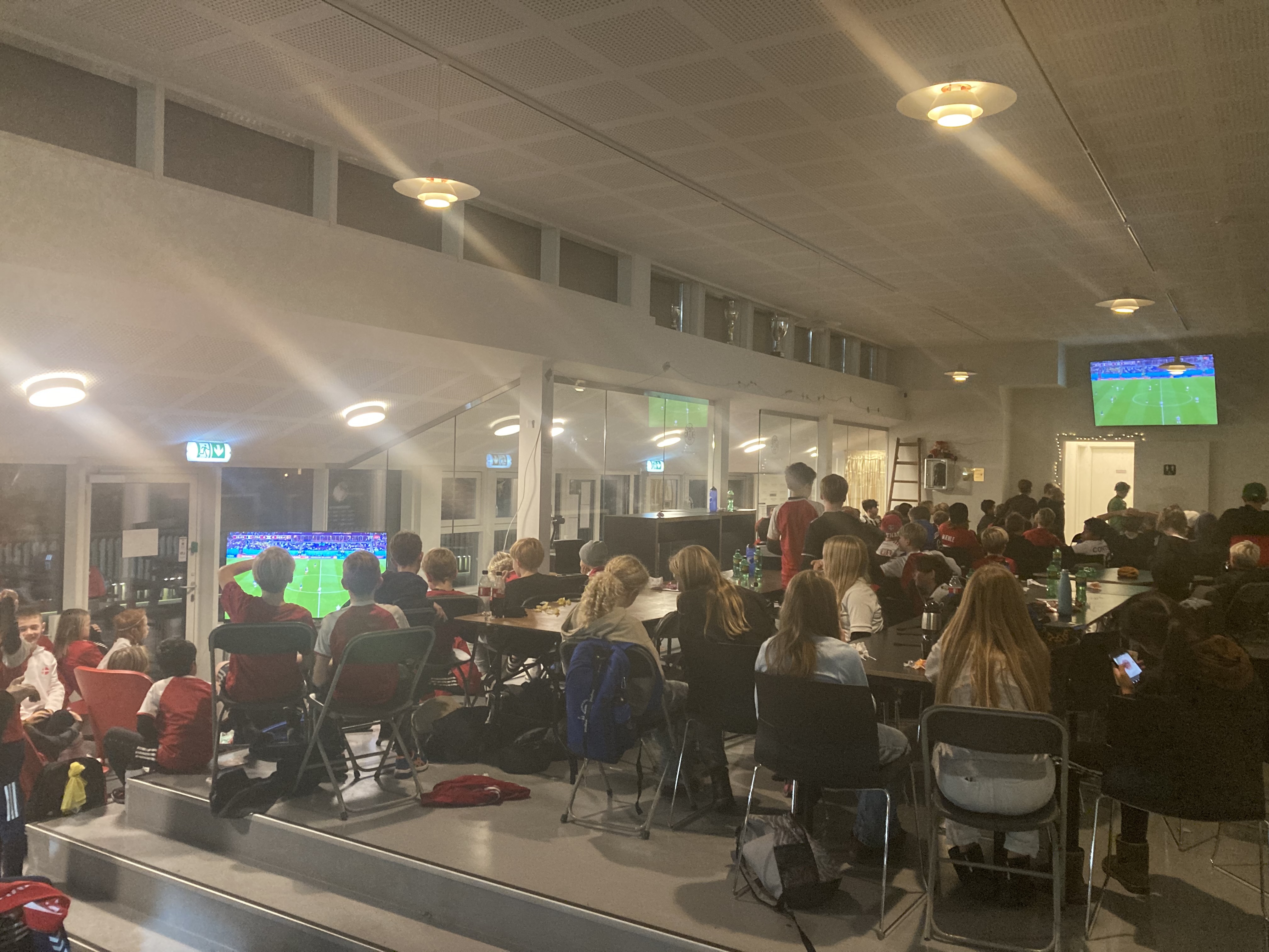 Efter kampen stod den på mad i B1903's cafe, hvor vi så Danmark-Frankrig. Klubhuset står endnu, men det går ikke helt stille af sig, når 130 børn ser landskamp sammen :)