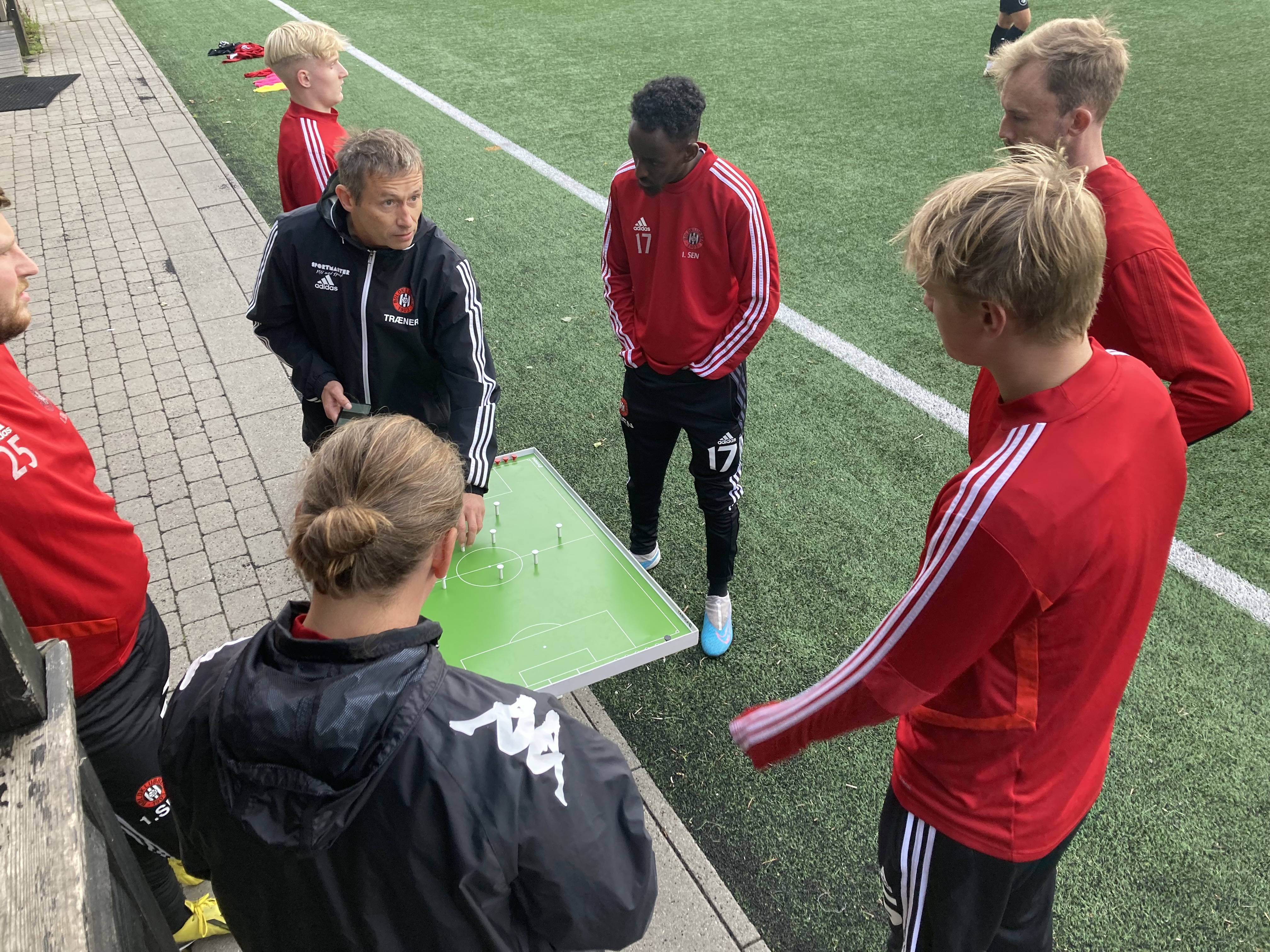 Cheftræner Martin Halsted lægger taktikken i en træningskamp