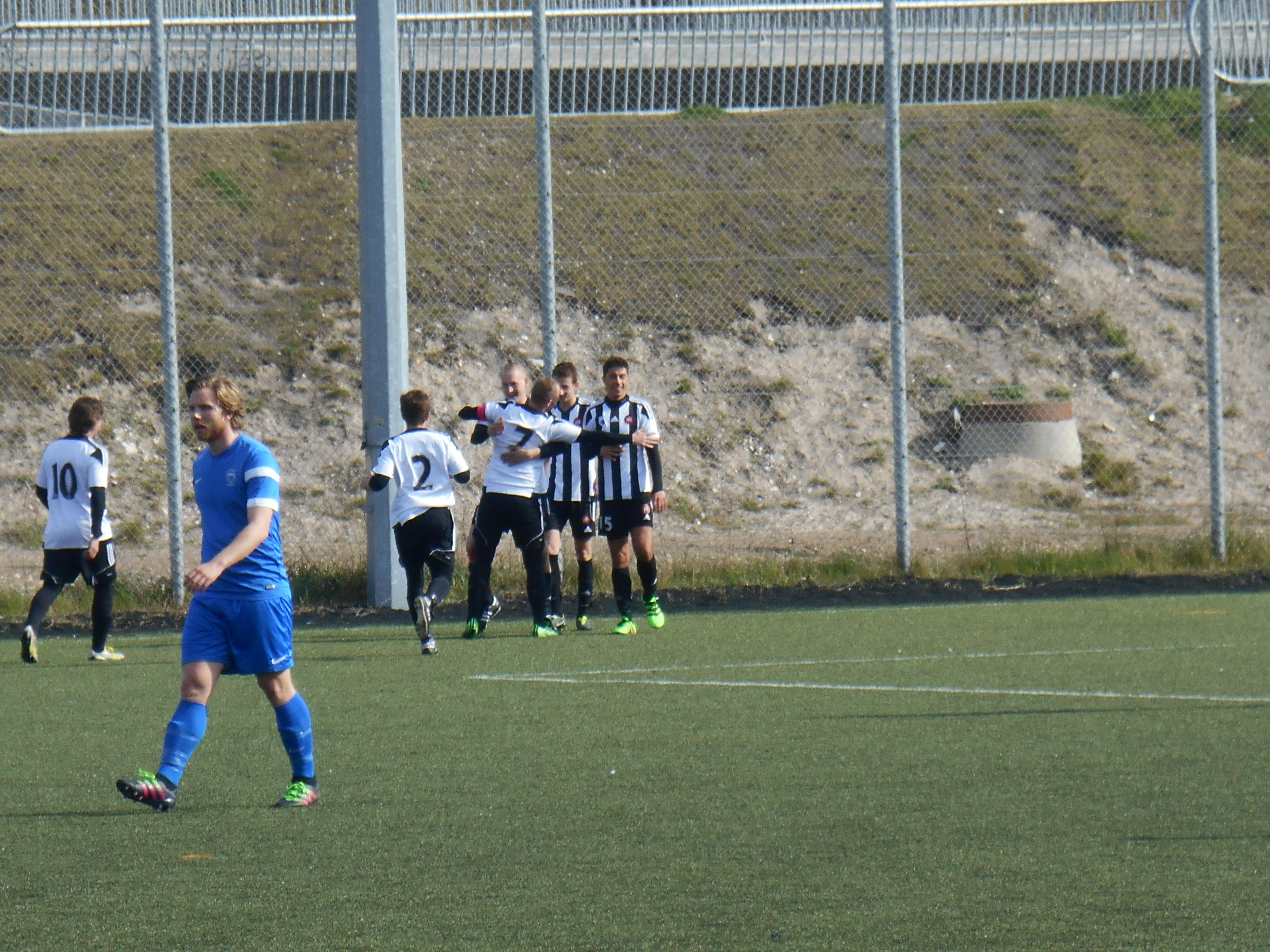 (Anfører Kim Madsen oppe og lykønske målscoreren, Lasse Rasmussen, efter 1-3 scoring til B1903)