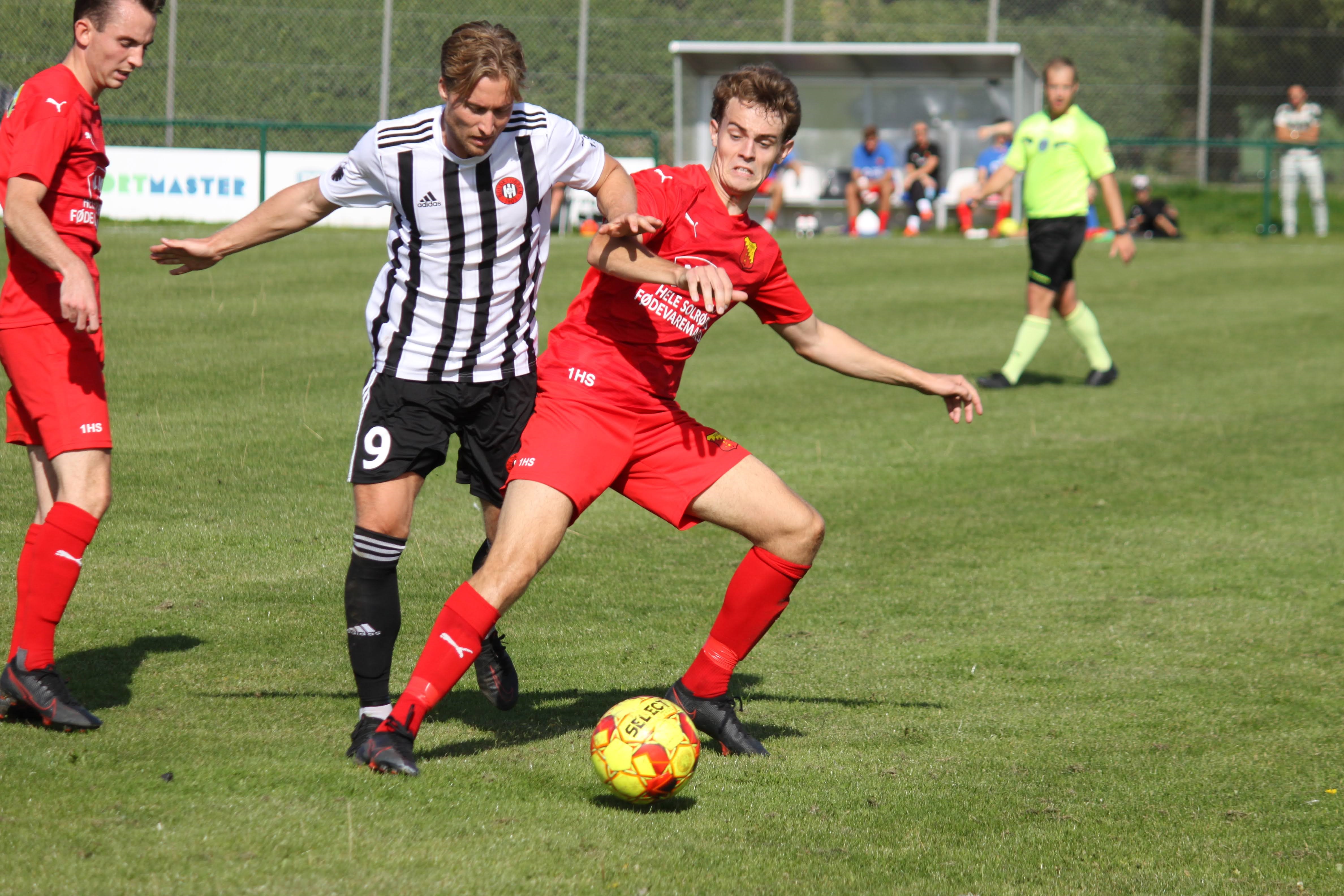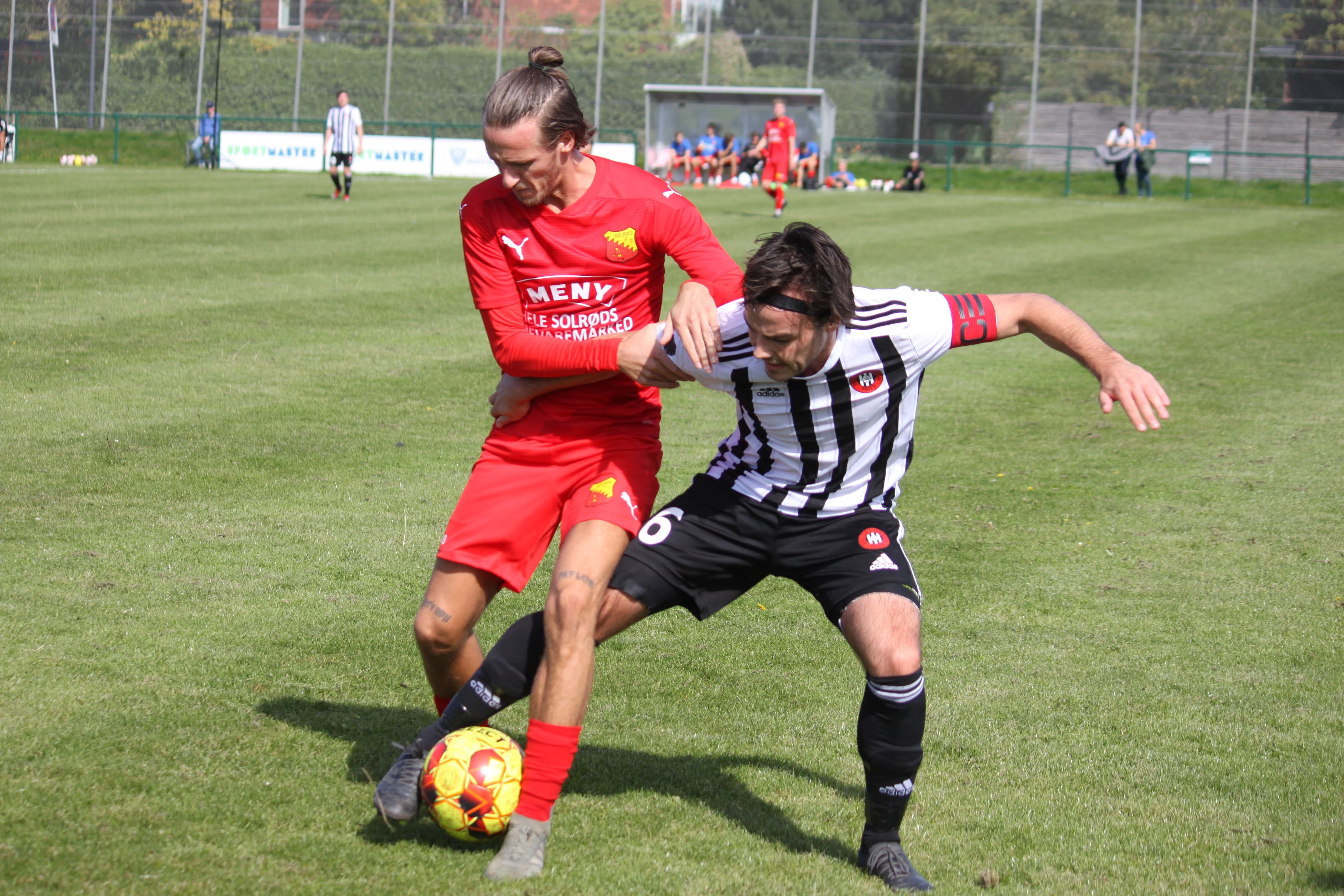 (Oliver Hallgren i duel. Oliver opererer mest på den defensive midtbane, men med to mål i de sidste to kampe griber han måske ud efter topscorer-titlen)