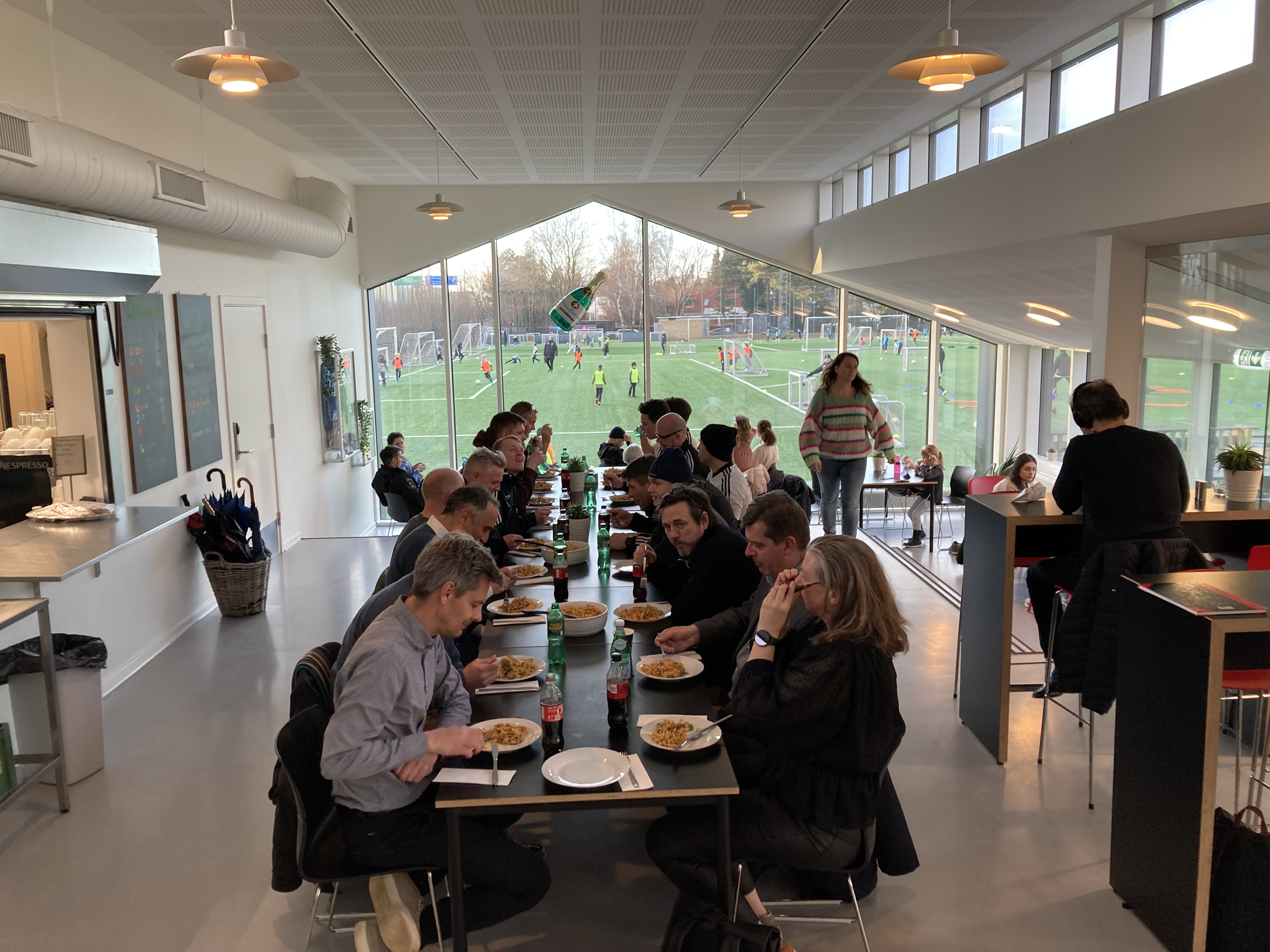 (hyggelig fællesspisning for B1903's trænere til workshoppen)